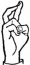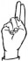 На ћирилици написано КСЕНИЈА ШВРАКА састоји се из 13 слова [?]. Исписано ћириличном једноручном азбуком за глувонеме: